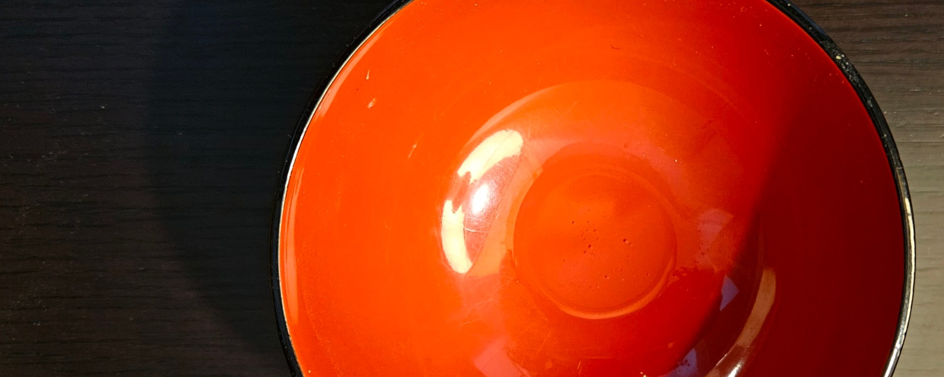 The swirling of the brown miso against the vibrant red interior. A pungent first stir. This bowl is the perfect size for my cheats miso soup – packaged and prepped for convenience. But this does not diminish the satisfaction. The dried wakame and tofu regaining shape, filling again with the fragrant soup. A metaphor for us all, sometimes we are bone dry, stripped by the headiness of life until we are shrivelled. Sometimes all it takes is some care and warm broth to reinvigorate our souls, filling us and allowing us to regain what was thought impossibly lost.